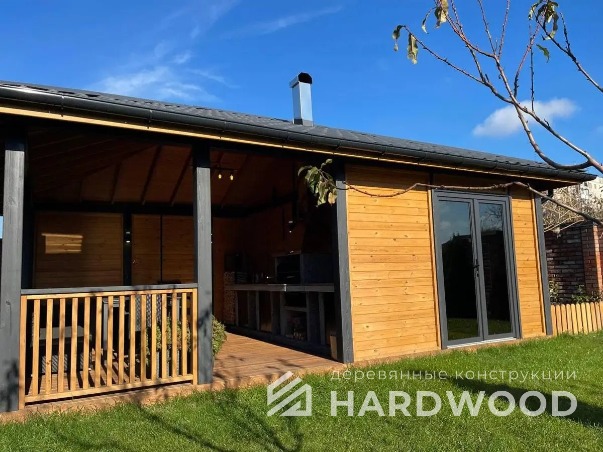 Определитесь с конструкцией и материалами. Для силуэта лофт характерны односкатные или плоские кровли, контраст дерева и металла, минималистичная обрешётка. Если важен всесезонный комфорт — подумайте о частичном остеклении, ветрозащите и подсветке; для летнего формата достаточно открытого павильона с навесом.