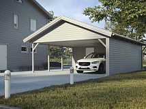 | Название модели: | Навес для двух автомобилей с хозблоком №135 |
